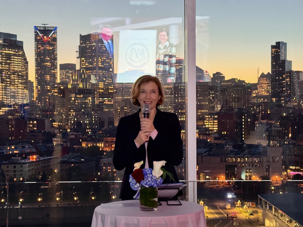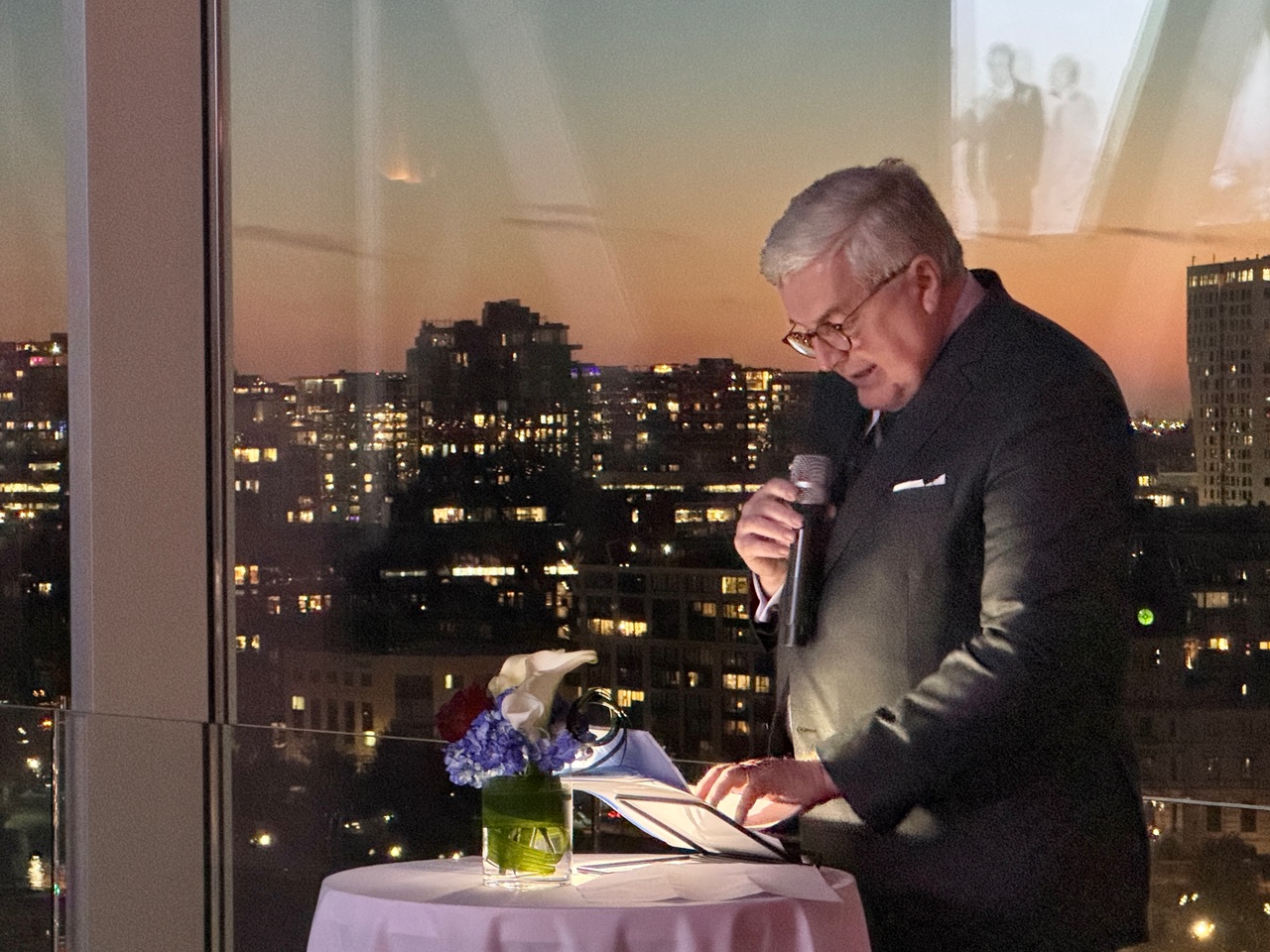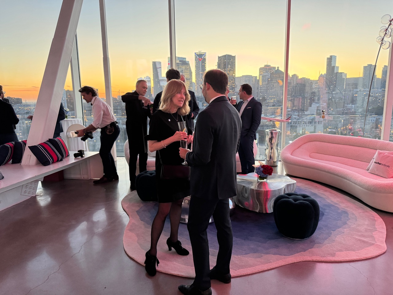 L’endroit choisi pour l’occasion, la très translucide Tour du Port de Montréal, était difficile à battre : au sommet de cet élégant monument tout habillé de verre, tout le monde s’est senti « suspendu entre ciel et terre », comme l’a dit Michel Miraillet, ambassadeur de France au Canada, tandis que devant le panorama de gratte-ciel qui se profilait au loin, « c’est tout Montréal qui a célébré » d’ajouter Yves Beauchamp, PDG d’Aéroports de Montréal.