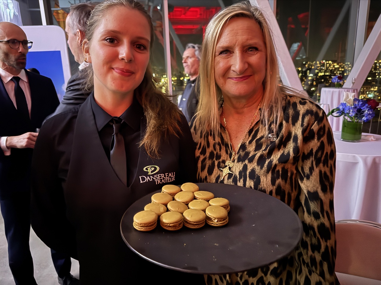 Quelqu’un veut des macarons au foie gras? Renée Bénard, d’Air France (à droite), semblait dire oui. Crédit: Gary Lawrence