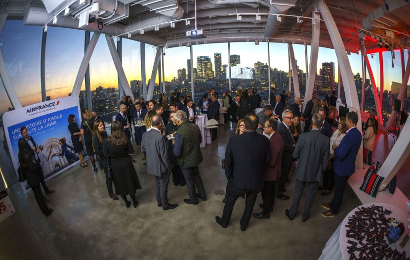 L’endroit choisi pour l’occasion, la très translucide Tour du Port de Montréal, était difficile à battre : au sommet de cet élégant monument tout habillé de verre, tout le monde s’est senti « suspendu entre ciel et terre », comme l’a dit Michel Miraillet, ambassadeur de France au Canada, tandis que devant le panorama de gratte-ciel qui se profilait au loin, « c’est tout Montréal qui a célébré » d’ajouter Yves Beauchamp, PDG d’Aéroports de Montréal.