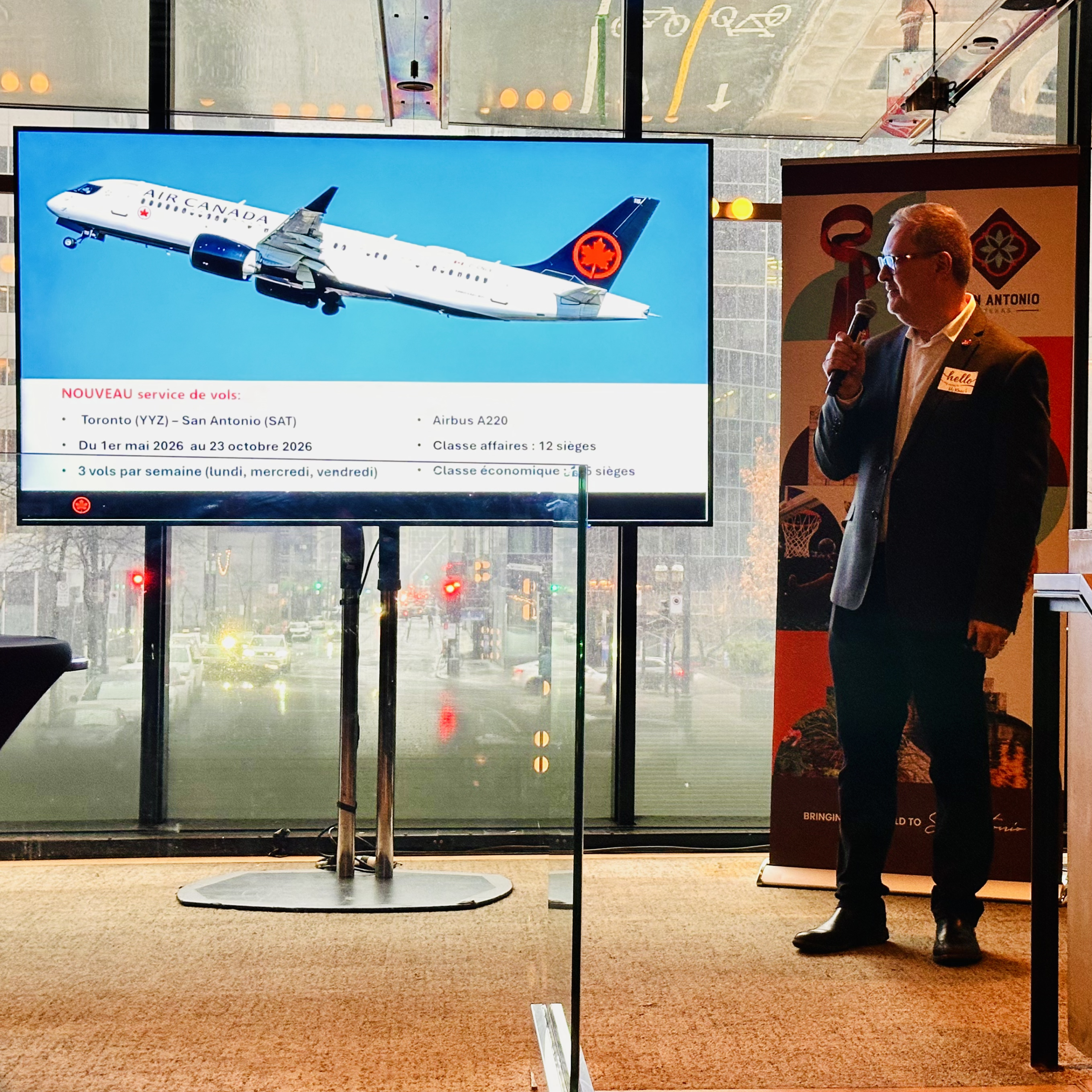 « Il s’agit du seul vol sans escale entre le Canada et San Antonio, souligne Mikhail Astakhov, directeur de la gestion des revenus chez Air Canada, devant les conseillers québécois réunis au restaurant Le Boulevardier, à Montréal. Cette liaison est parfaitement intégrée à notre réseau à Toronto, ce qui est crucial pour le marché québécois. Grâce à des correspondances fluides depuis Montréal et Québec, San Antonio devient une destination particulièrement accessible et attrayante pour la clientèle québécoise. »