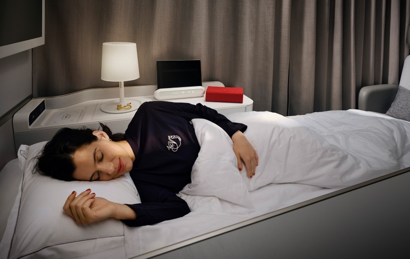 La nouvelle suite évolue ainsi au rythme et selon les envies de chacun. Elle dispose d’un espace privatif de près de 3,5 mètres carrés, soit 25 % d’espace supplémentaire par rapport à la cabine actuelle. Un plaid (couverture de voyage) douillet et de larges coussins font de cette cabine un cocon intimiste.