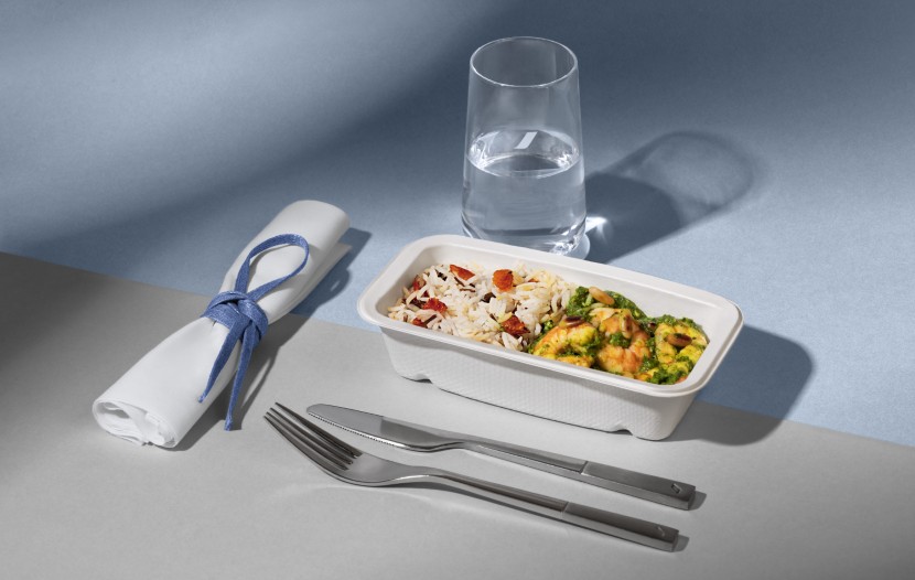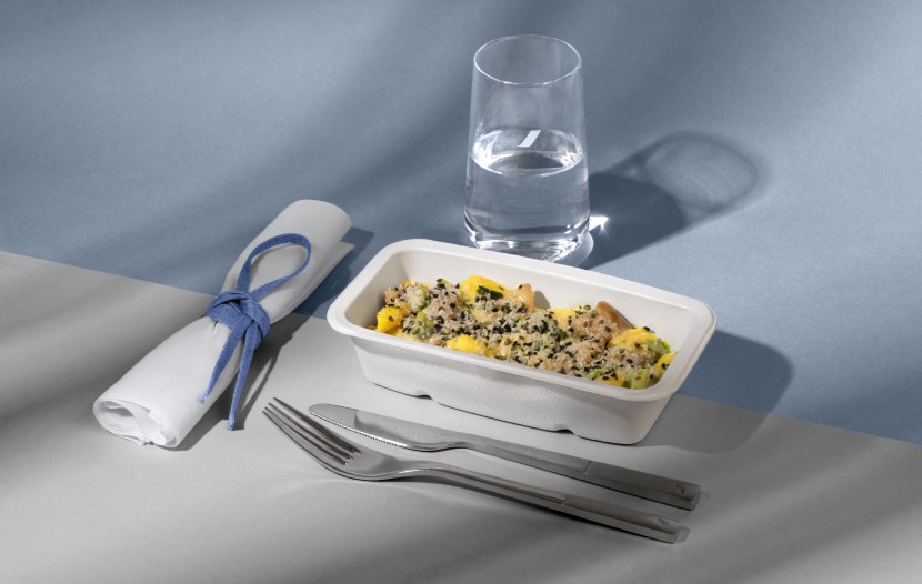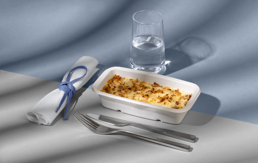 Il privilégie les produits frais et de saison, conformément aux engagements de la compagnie aérienne. Parmi les créations à découvrir à bord : petites Saint-Jacques, sauce aux perles de tapioca et pâtes aux asperges, ou encore gratin de pâtes trofie aux cèpes et noisettes.