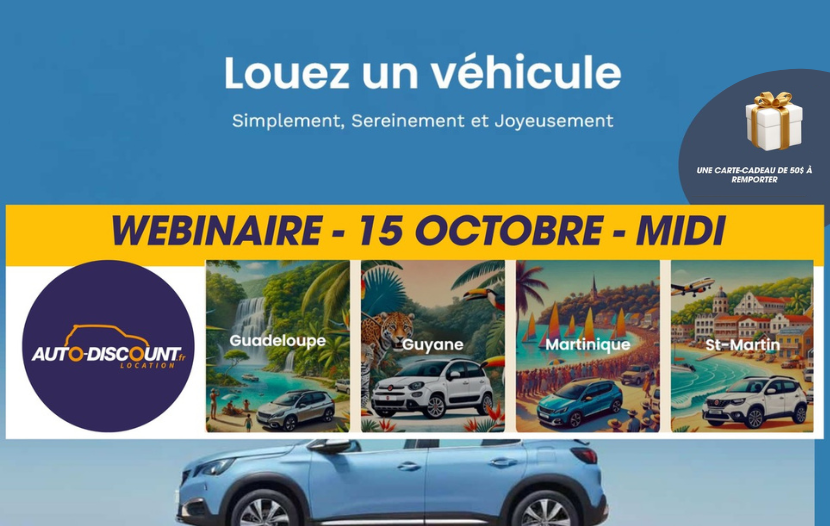 Les agents de voyages du Québec sont invités à participer au tout premier webinaire d’Auto Discount Location, le mardi 15 octobre à midi (heure du Québec).