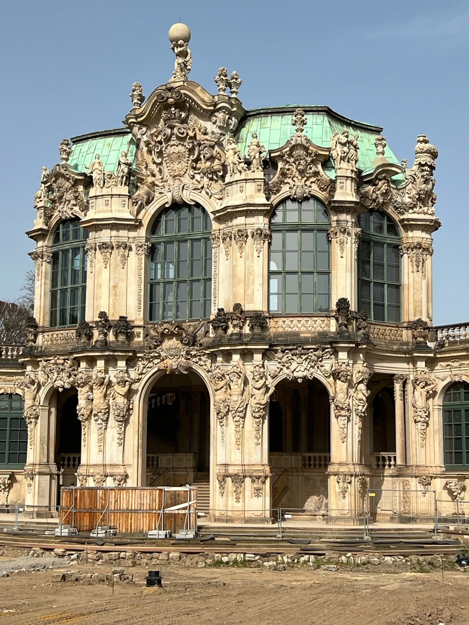 Entre autres splendeurs de Dresde, le Zwinger se démarque particulièrement. Même s’il est, hélas, au cœur d’importants travaux de rénovations, on peut néanmoins en admirer toute la superbe.
