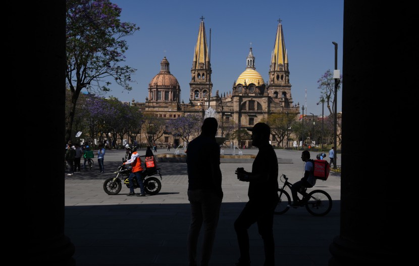 Légende de l’image principale: Des gens flânent sur la place de la cathédrale de l’Assomption-de-Notre-Dame, au centre de Guadalajara, Mexique, le 25 février 2026 (AP Photo/Marco Ugarte).