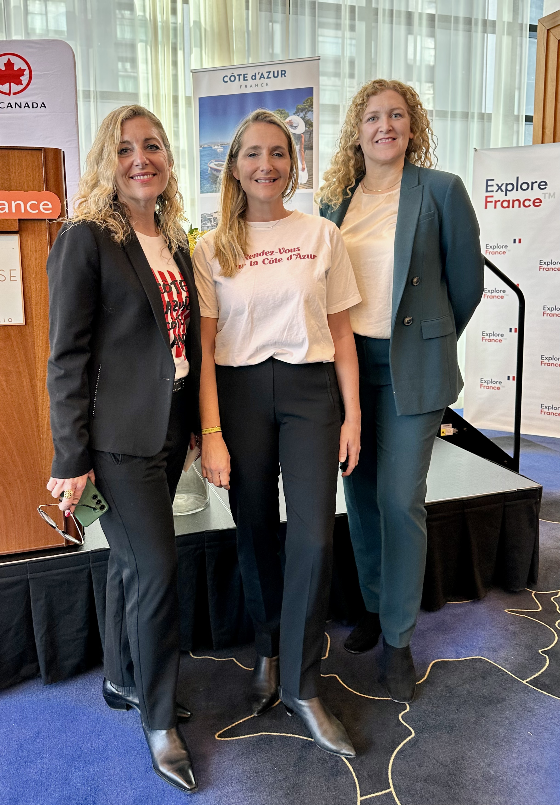 - Claire Behar, directrice générale de Côte d’Azur France Tourisme, Alexandra Borchio Fontimp et Mélanie Paul-Hus, directrice d’Atout France au Canada ©Malik Cocherel