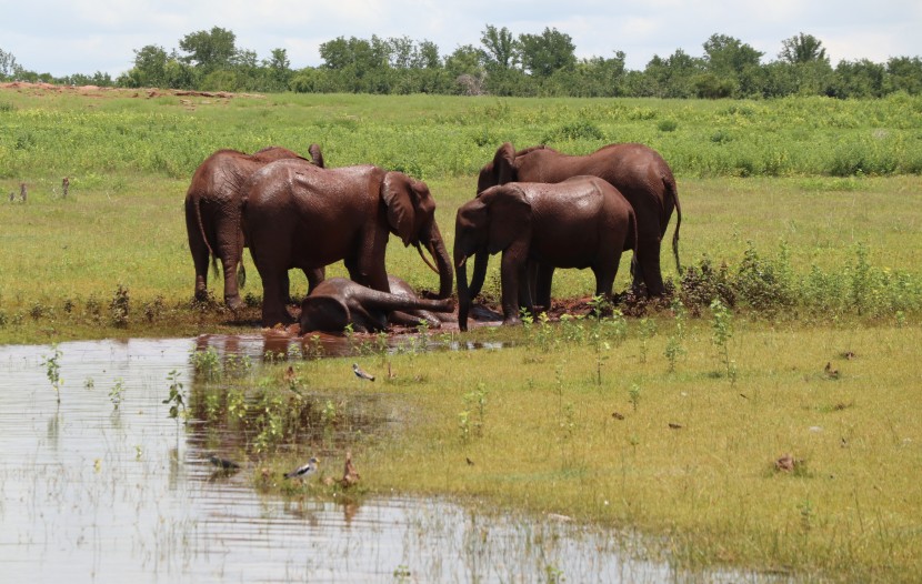 Si des zèbres craintifs prennent leurs pattes à leur coup en devinant notre présence, un quatuor d’éléphants s’est par exemple laissé approcher tandis qu’il vaquait à ses occupations : séance de douche à la trompe d’abord, bain de boue festif par la suite.