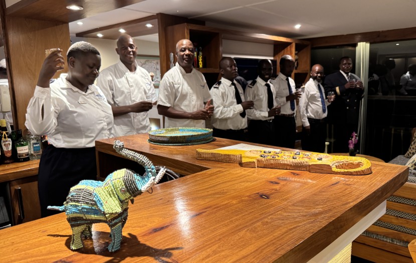 Non seulement le personnel est particulièrement enjoué à chaque fois que les croisiéristes partent en excursion et en reviennent, mais encore offre-t-il des prestations de chants et danses traditionnels (ou pas) hors pair – appelons ça la touche festive africaine.