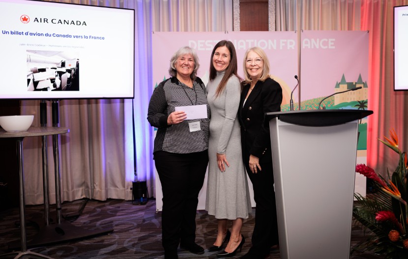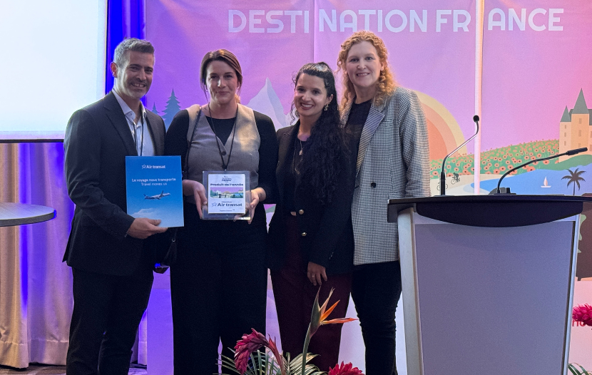 En compagnie de Nour Mehalli, spécialiste commerciale chez Air Transat, et de Mélanie Paul-Hus, Jhadyd Gonzalez a ensuite remis le prix Destination France 2026 à Voyageurs du Monde pour son circuit Sur les routes de Normandie et de Bretagne – Côtes sauvages et parenthèses bucoliques.