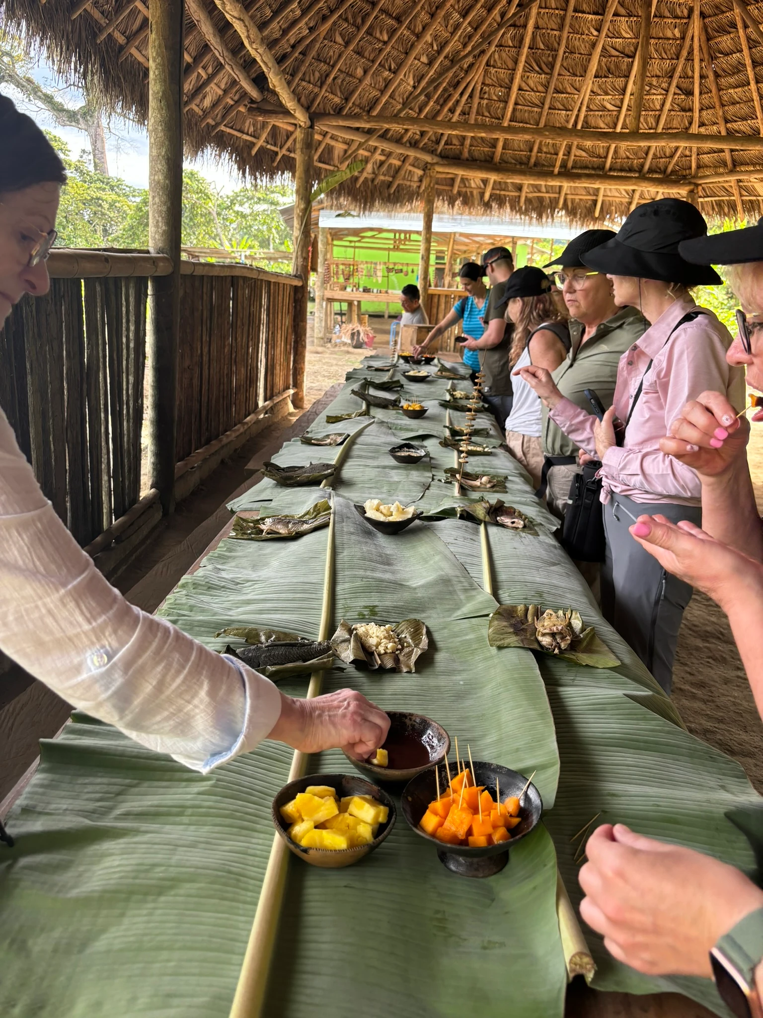 Pendant son séjour, le groupe a bénéficié de l’expertise des membres de la communauté autochtone Kichwa, résidant dans cette partie de l’Amazonie équatorienne, pour diverses activités telles que des randonnées d’interprétation nocturne, l’observation d’aras et de perroquets le long des parois argileuses en pirogue, ainsi qu’une immersion dans la culture kichwa incluant la dégustation de spécialités locales et insolites comme des larves ou la boisson fermentée traditionnelle, la chicha.