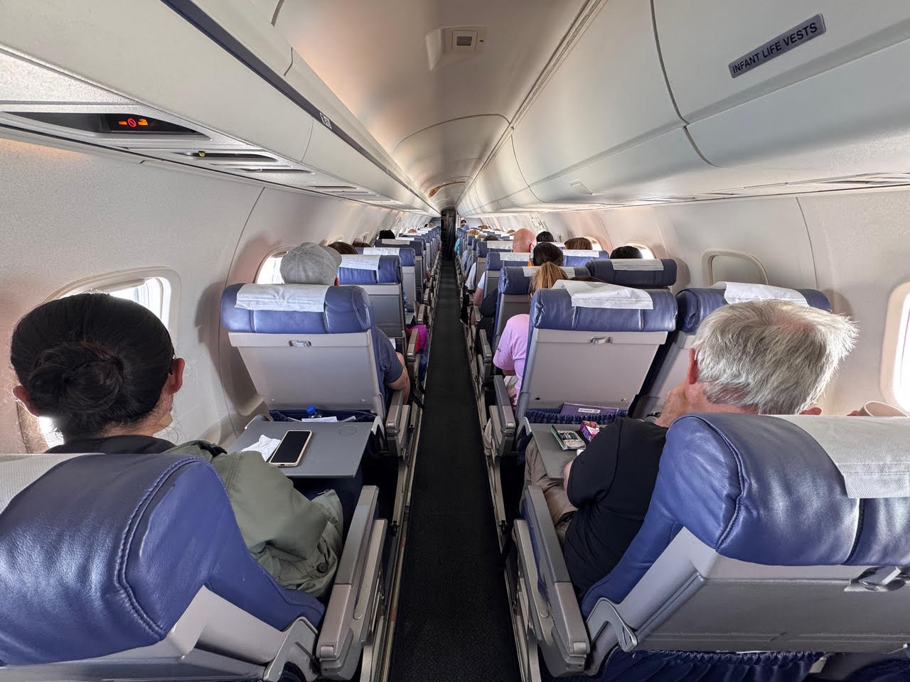 Même s’il n’était pas flambant neuf – l’âge moyen des avions de la flotte est de 20 ans – l’appareil utilisé pour ce vol était configuré avec un confortable espacement de 31 pouces entre les sièges standard, par ailleurs bien moelleux.