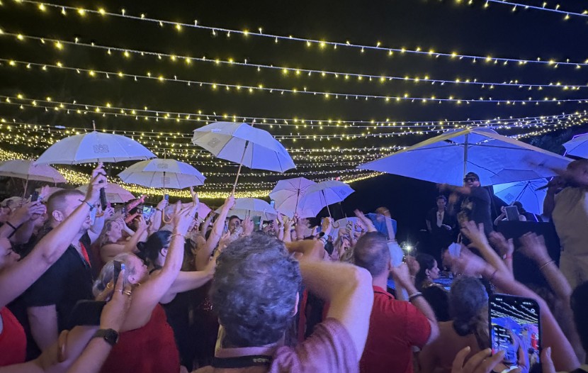 « Avouez que c’est assez magique de danser sous la pluie », clamait à la foule Nino Montagnese. Et d’ailleurs, parmi les belles surprises de la soirée, on a pu voir le vice-président de Vacances Air Canada faire quelques pas de danse sur scène, aux côtés de Karl Wolf, après avoir fait son entrée en jouant du tambour, au sein du groupe de percussionnistes. « Nul doute, il y a une ambiance et une effervescence très spéciales sur cette plage ce soir », de confier Nino Montagnese.
