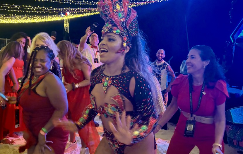 Après le salon professionnel, qui se déroulait dans la section Grand Velas Zen, tous ont convergé vers la plage de la section Grand Velas Ambassadeur, où les attendaient un buffet impressionnant, plusieurs bars et une scène, fin prête pour la fête. Or, une fois tous les invités installés à leurs tables, la pluie s’est invitée au spectacle… « Ça fait un an que nous rêvons de cette grande célébration et ce n’est pas la pluie qui va nous empêcher de fêter! », de clamer Nino Montagnese, vice-président de Vacances Air Canada.