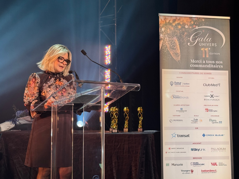 Avant de lui remettre son prix, Renée Boisvert a brièvement brossé le portrait de cette figure emblématique de l’industrie québécoise du voyage, en plus de la couvrir d’éloges.