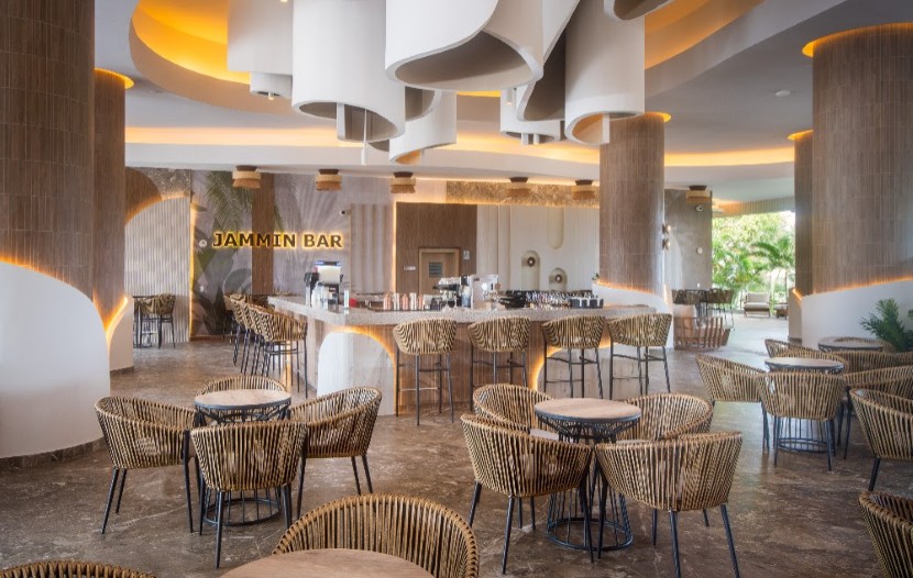 Le design intérieur, moderne et rafraîchi, propose des espaces lumineux, des tons naturels et un mobilier simple et élégant « qui reflète l’esprit chaleureux et vibrant de la Jamaïque, indique la chaîne. Les clients sont accueillis dans un nouveau hall impressionnant orné de végétation tropicale et d’accents en bois naturel et en pierre. »