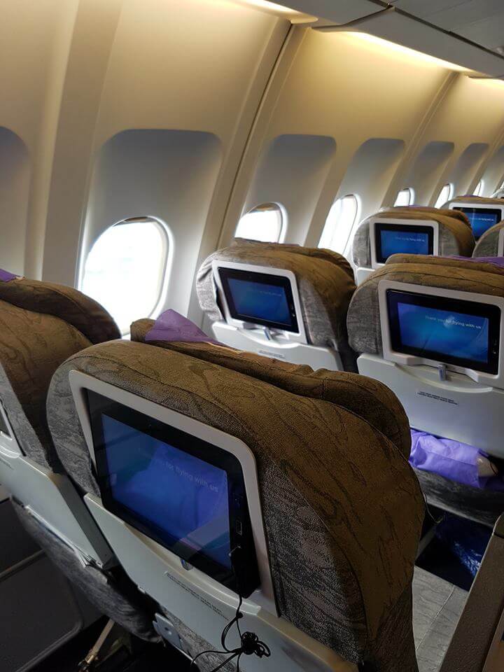 (Le modèle de l’avion sur lequel j’ai volé était un Airbus 340. Ce modèle est disponible pour les vols quotidiens uniquement jusqu’au 2 septembre 2017.)