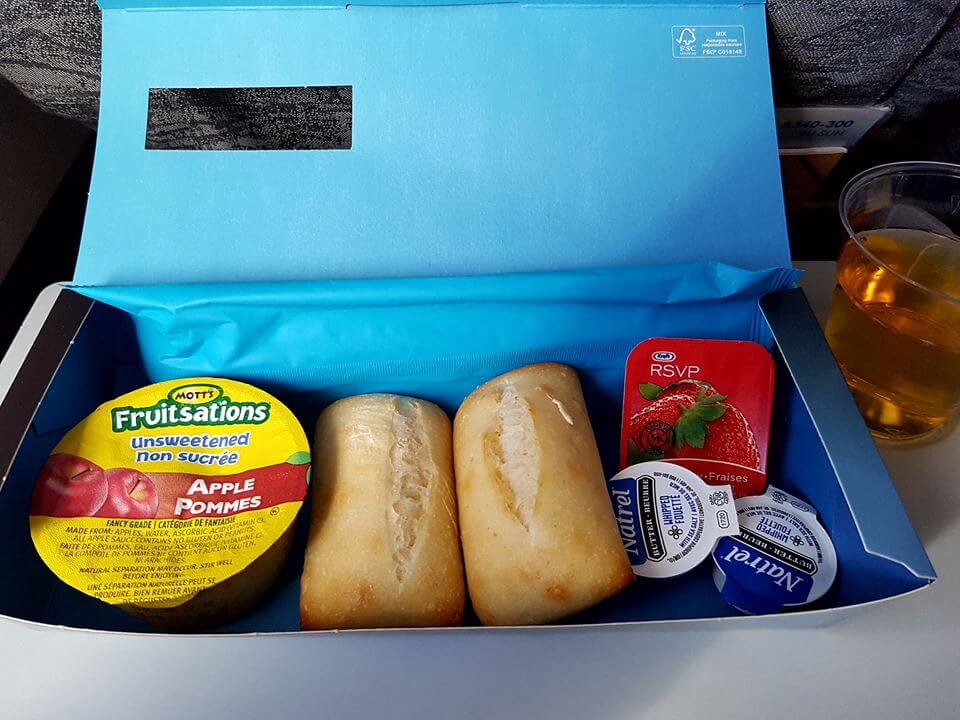 Quelle compagnie offre vraiment un bon repas en classe économique de nos jours? Corsair se démarque par un plat tout à fait correct et un petit déjeuner simple et efficace! Certains passagers m’ont confié que pour un si petit prix, ils ne s’attendaient pas à une si bonne qualité de nourriture à bord. Il y a même un petit brownie qui a fait forte impression à ma voisine de siège lors de son précédent vol avec Corsair. Les boissons sont gratuites sauf les alcools forts qui sont en supplément. Vous n’arriverez pas affamé à Paris, c’est promis!