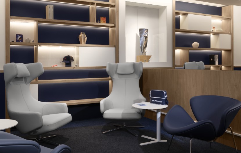 Imaginé et conçu par les équipes d’Air France en collaboration avec l’agence SGK Brandimage, ce salon est une parenthèse de confort pour se reposer, se restaurer ou travailler sereinement.