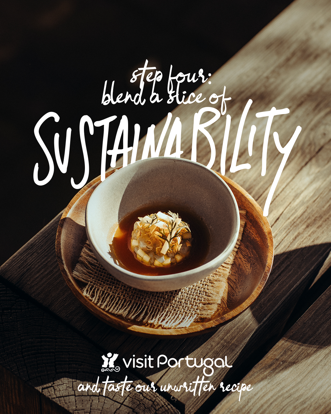Cette campagne invite à goûter et explorer le Portugal à travers une recette qui associe des ingrédients tels que la fraîcheur, l’authenticité, la créativité, la durabilité et la générosité du peuple portugais. Composée d’un film conceptuel et de cinq vidéos dédiées à chacun de ces thèmes, la campagne entremêle images de de destinations et visuels d’ingrédients et de plats, emmenant les spectateurs dans un voyage à travers les saveurs des régions, la culture et la vie communautaire.