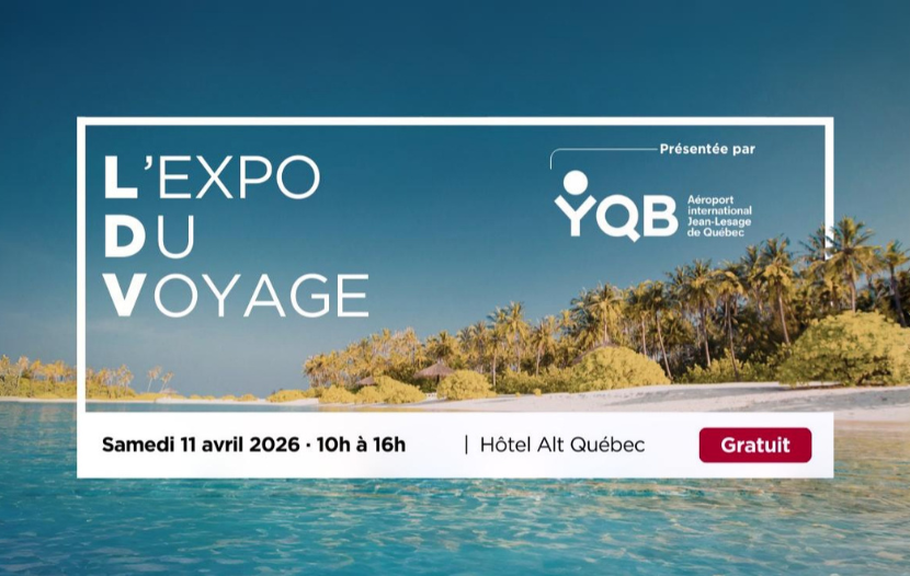 Présentée en collaboration avec l’Aéroport international Jean‑Lesage de Québec, l’Expo du voyage donnera également lieu à une série de onze conférences variées et exclusives. Elle se déroulera de 10 h à 16 h.