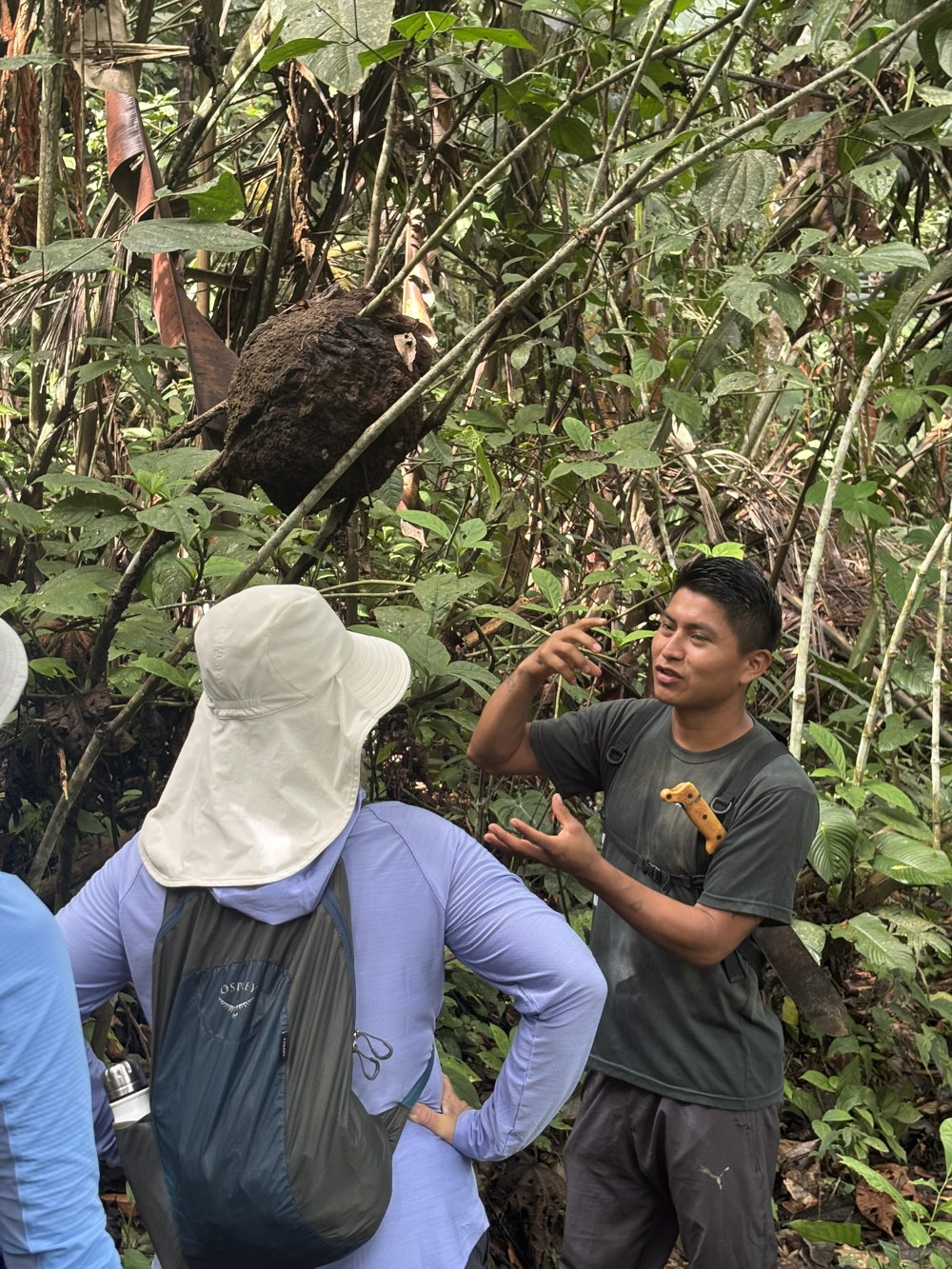 La randonnée en forêt, menée par un guide naturaliste kichwa, a été l’un des moments les plus marquants de l’étape. En plus d’identifier les espèces végétales, oiseaux et insectes, le guide a partagé son savoir sur les plantes médicinales, les remèdes naturels et les traditions autochtones associées à la forêt.