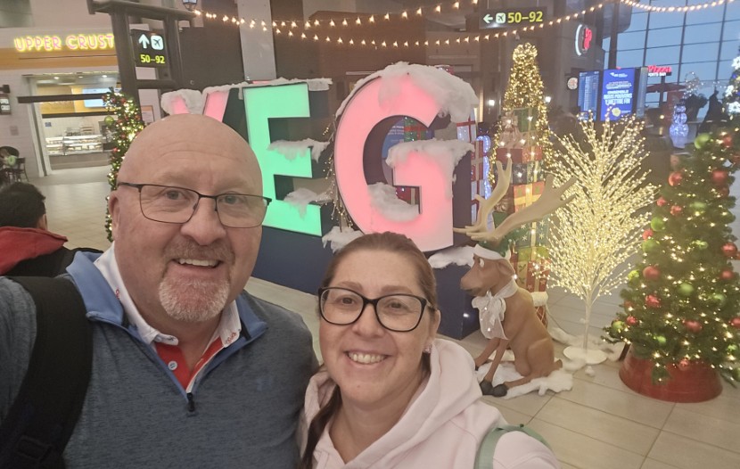 Image à la une : Dave Rogers, à gauche, et son épouse, qui vivent à Redcliff, en Alberta, sont photographiés ici à l’aéroport international d’Edmonton avant leur départ pour le Mexique, le mercredi 24 décembre 2025. LA PRESSE CANADIENNE/Document – Dave Rogers