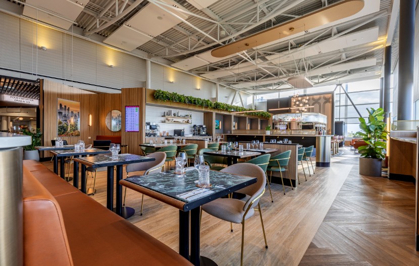 Ouvert tous les jours de 5 h à 21 h, le salon offre 100 places assises dans sa salle à manger et à son bar (où les consommations sont offertes à volonté), mais aussi un espace de salon, des postes de travail et des cabines privées – dont une réservée aux appels téléphoniques – afin de maximiser le confort et la fonctionnalité pour les passagers.