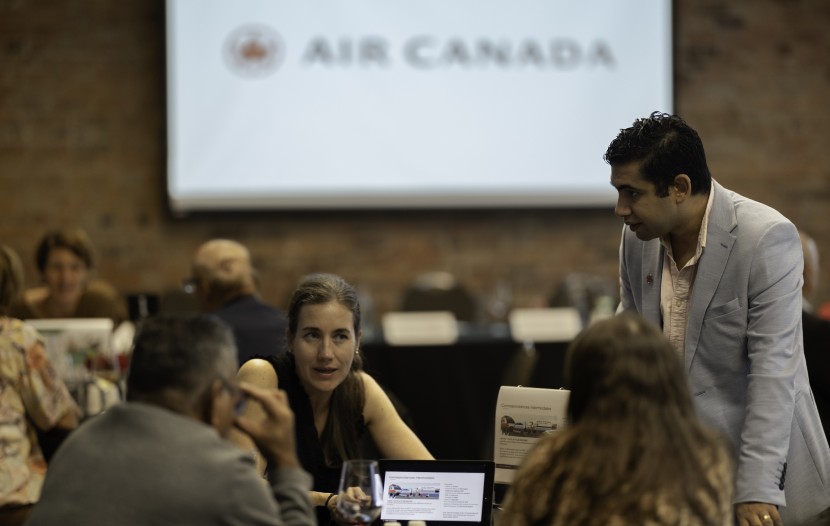 Sur la photo de une, on reconnaît de gauche à droite Julie-Anne Cadieux, Air Canada; Ramon Tawfik, Air Canada; Danielle Kaiser, Lufthansa Group; Eszter Almasi, Aéroport de Vienne; Armando Mendonça, AMPM; Markus Kustatscher, Musée d’Histoire de Vienne; Florian Wiesinger, Bureau de tourisme de Vienne et Renée Wilson, AMPM.