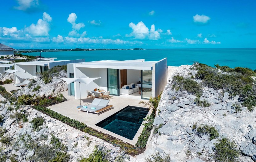 « Wymara Villas, à Sunset Cove, aux îles Turques-et-Caïques, est une retraite perchée au-dessus de l’un des segments de littoral les plus isolés de l’île. Nichées dans les collines de Turtle Tail, ces villas élégantes aux façades vitrées offrent des vues panoramiques sur la mer turquoise, avec des aménagements ouverts qui estompent la frontière entre luxe intérieur et sérénité extérieure.